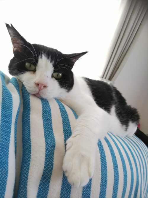 白黒はちわれの男の子「ムギ」と暮らしています。推定3歳で我が家にやってきた元保護猫です。特技はゴロン(擬音的に言うならドスンが正しい)食べることが大好きな大きめさんです。そうつまりデb…(自主規制)